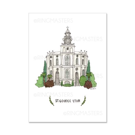 Gift this beautiful St. George Temple 3x4" Each print is printed on a quality cardstock and makes a great gift for all from loved ones to your primary class! From Ringmasters. The world leader in gifts for members of the Church of Jesus Christ of Latter-day Saints