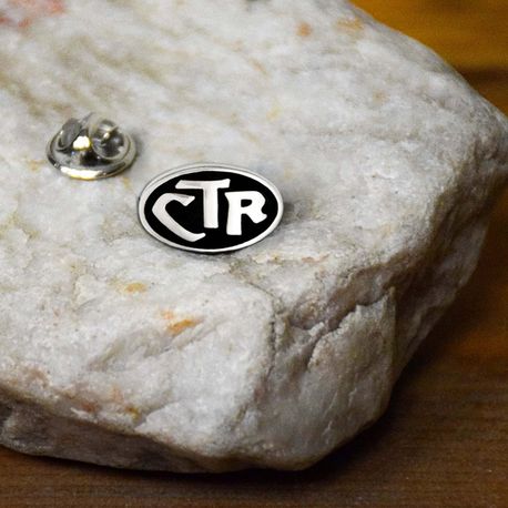 This classic CTR black and silver pin is approximately 1/2" and comes complete with a butterfly clip.