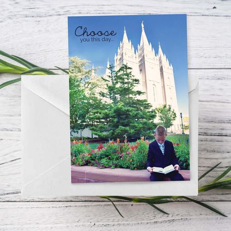 From the Sincere Thoughts premiere greeting card line, with greetings for any occasion come this fun 5x7 inch Choose You This Day greeting card. Blank inside. Comes with an envelope, to make it instantly giftable. From Ringmasters. The world leader in gifts for members of the Church of Jesus Christ of Latter-day Saints