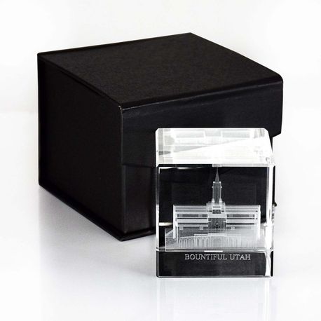This beautiful laser engraved crystal cube makes for a perfect wedding or anniversary gifts. Together with a lighted rotating base, these 3D pieces of art make for a great decoration on a table or shelf. Each cube is packaged in a beautiful velvet-lined gift box. Over 30 temples are available for members across the United States and Canada. This cube is: 5cm x 5cm x 8cm.