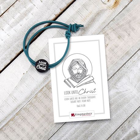 This waxed cord silicone bracelet in a striking bright teal color is a perfect blend of style and faith. Featuring the 2025 Youth Theme for The Church of Jesus Christ of Latter-day Saints, "Look unto Christ" (Doctrine & Covenants 6:36), it serves as a daily reminder to focus on Christ in all things. Made with premium waxed cord and durable silicone, this bracelet offers a comfortable, adjustable fit, making it ideal for youth in the Young Men's and Young Women's programs. At just $2.99, it’s an affordable and meaningful way for youth to express their dedication to following the Savior.