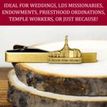 "The temple is an ever-present reminder that God intends the family to be eternal." - Ezra Taft Benson. This antique gold finish tie bar beautifully represents the Columbia River temple and makes the perfect gift for men and young men. Strong and durable clip prevents slipping down the shirt and tie. Comes with Ringmasters lifetime warranty.