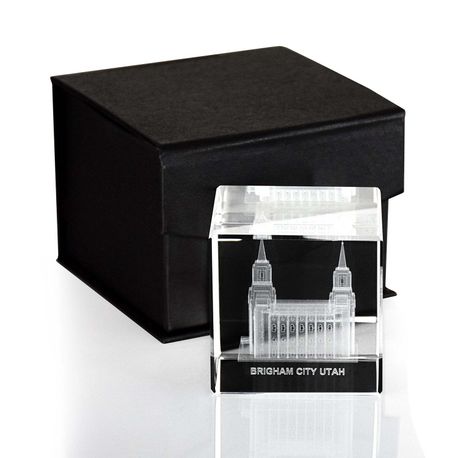Brigham City Utah Temple Laser Engraved Crystal Cube