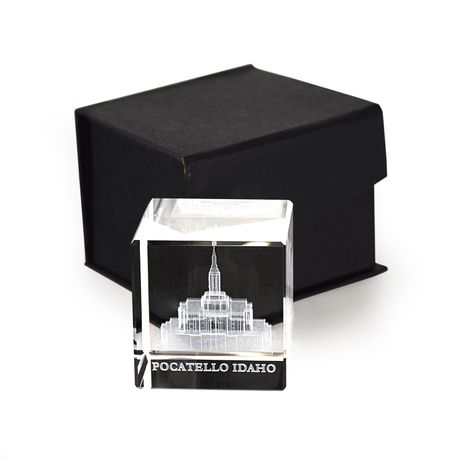 Pocatello Idaho Temple Laser Engraved Crystal Cube