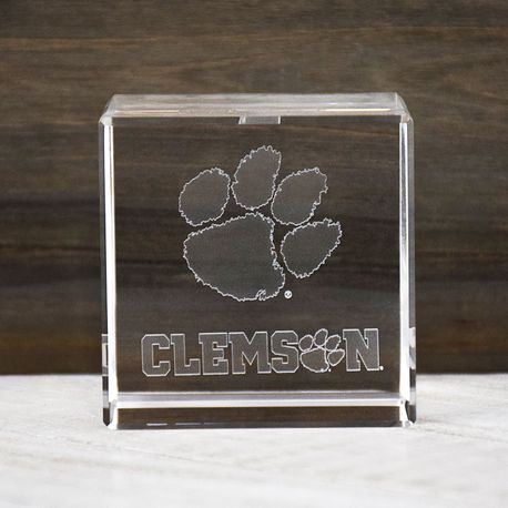 Fan Frenzy Gifts Clemson Tigers Officially Licensed Paw Laser Engraved Crystal Cube