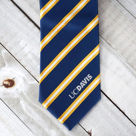 Wear your allegiance to the legendary Cal Davis University with this officially licensed UC Davis Aggies Men's Tie! This trendy striped tie is the perfect accessory for any fan. Tie is approximately from 62" long and is made from microfiber, which is washable and more durable than silk. This tie perfectly compliments Fan Frenzy's UC Davis Tie Bar which is sold separately. Comes with Fan Frenzy's lifetime warranty. 62" Men's Tie Made from durable, machine washable microfiber Perfect for the UC Davis Aggies Fan in your life Metal:No metal Weight: 0.02 Catalog code: CLHTL085 Designer: Kirk Edwards Contact us with any questions!