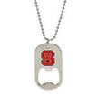 Wear your allegiance to the legendary NC State with this officially licensed NC State Bottle Opening Dog Tag! This trendy dog tag will come in handy for tailgating and the big game! The NC State logo is featured on the silver finish dog tag. Dog tag is approximately 2" and comes on a 24" ball chain that can be cut to the size you prefer. Comes with Fan Frenzy's lifetime warranty
