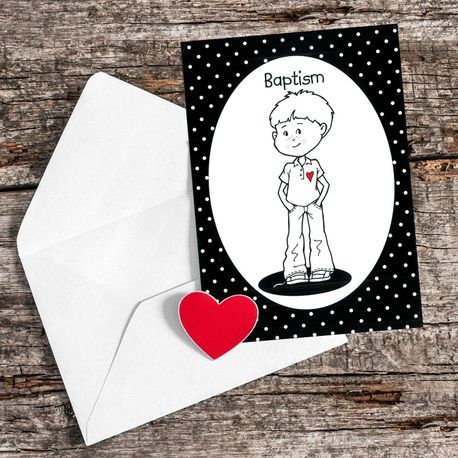 Black and White Baptism Boy Greeting Card