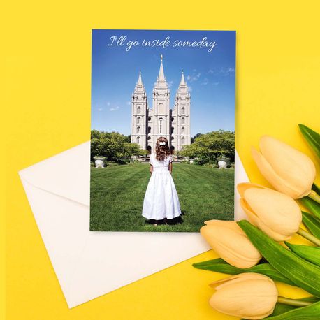 From the Sincere Thoughts premiere greeting card line, with greetings for any occasion come this fun 5x7 inch I'll Go Inside Someday greeting card. Blank inside. Comes with an envelope, to make it instantly giftable. From Ringmasters. The world leader in gifts for members of the Church of Jesus Christ of Latter-day Saints