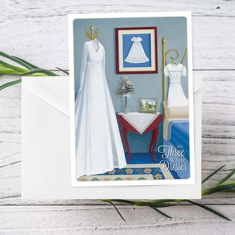 From the Sincere Thoughts premiere greeting card line, with greetings for any occasion come this fun 5x7 inch Three White Dresses greeting card. Blank inside. Comes with an envelope, to make it instantly giftable. From Ringmasters. The world leader in gifts for members of the Church of Jesus Christ of Latter-day Saints