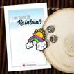 This adorable baptism enamel pin is approximately 1 1/4" The look is completed with an "I like to look for rainbows" baptism rainbow backer card. Perfect gift for a 8-year-old girl who is about to be baptized.