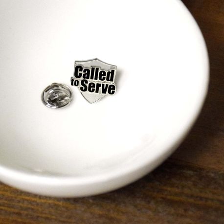 Called To Serve Pin Silver finish with black enamel Shield shape is approximately 5/8"