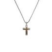 Striking large cross necklace. Silver and black cross pendant approximately 1 3/4" on a black ball chain. Chain length is 22" but can be trimmed to any size.
