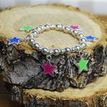 There are millions of stars in the universe, but each one is unique and each one shares its own special light each night. Realize that you are special and unique too and that you can choose to leave your own mark in the world. Choose today to love yourself and your own light. This 6" stretch bracelet has six star pendants in pink, green, blue. Give this as a gift to the person who shines brightest for you!