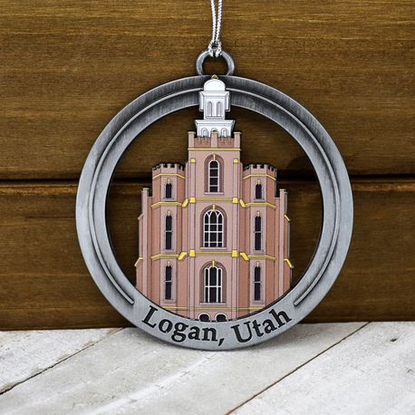 This keepsake ornament proudly displays the beautiful Logan Utah temple in an antique silver finish with hand painted enamel. The ornament is 3" inches in diameter and features a silver string attachment to hang on your Christmas tree or a chrome plated ornament stand also available from Ringmasters. Perfect for weddings or anniversaries, bring this beautiful temple ornament into your home.