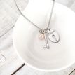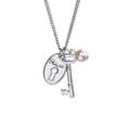 "Prayer is your personal key to Heaven" - Boyd K. Packer Remind yourself of the power of prayer with this gorgeous necklace featuring a silver-plated door lock charm inscribed with prayer, a delicate key, and a rose colored pearl. The three charms hang from an 18-20" adjustable silver curb link charm. Comes with a lifetime warranty.