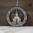 This keepsake ornament proudly displays the beautiful temple in an antique silver finish. The ornament is 3" inches in diameter and features a silver string attachment to hang on your Christmas tree or a chrome plated ornament stand also available from Ringmasters. Perfect for weddings or anniversaries, bring this beautiful temple ornament into your home.