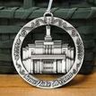 This keepsake ornament proudly displays the beautiful temple in an antique silver finish. The ornament is 3" inches in diameter and features a silver string attachment to hang on your Christmas tree or a chrome plated ornament stand also available from Ringmasters. Perfect for weddings or anniversaries, bring this beautiful temple ornament into your home.