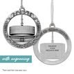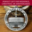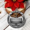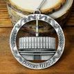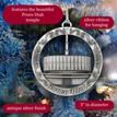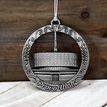 This keepsake ornament proudly displays the beautiful temple in an antique silver finish. The ornament is 3" inches in diameter and features a silver string attachment to hang on your Christmas tree or a chrome plated ornament stand also available from Ringmasters. Perfect for weddings or anniversaries, bring this beautiful temple ornament into your home.