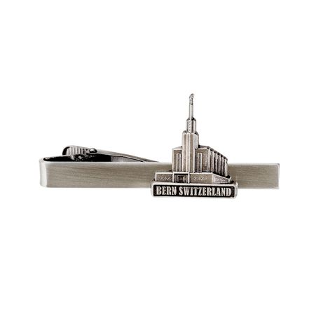 "The temple is an ever-present reminder that God intends the family to be eternal." - Ezra Taft Benson. This antique silver finish tie bar beautifully represents the Bern temple and makes the perfect gift for men and young men. Strong and durable clip prevents slipping down the shirt and tie. Comes with Ringmasters lifetime warranty.