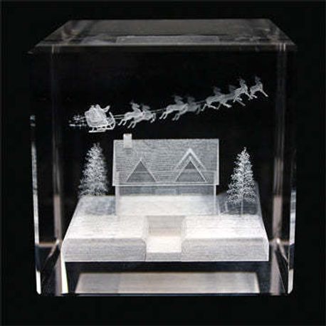 Up on the Housetop Laser Engraved Crystal Cube