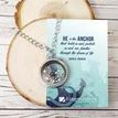 He is the ANCHOR that holds us and protects us and our families through the storms of life. ~Boyd K. Packer The living locket set includes a dainty anchor and key charms, as well as small pearls and diamond-shaped stones. These charms are encased inside a transparent locket with clear stones encased around the edges. The locket size is just over an inch.