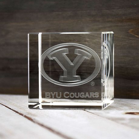 Fan Frenzy Gifts BYU Cougars Officially Licensed Laser Engraved Crystal Cube