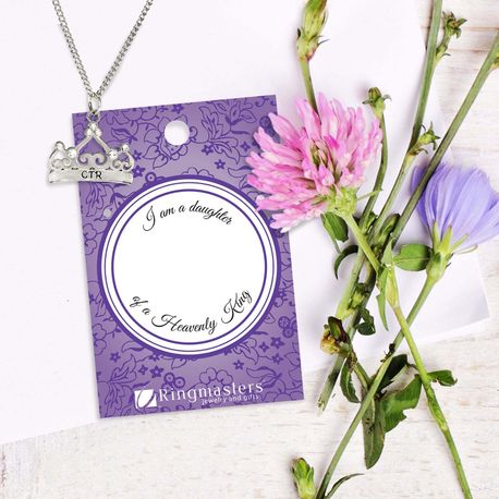 "I am a daughter of a Heavenly King" The journey of life will present you with multiple challenges and that's when you need a reminder close to you to Choose Right. These elegant necklaces will help you do just that. This adorable crown necklace comes complete with 7 clear stones and is approximately 3/4". Includes an 18-20" adjustable curb link chain.