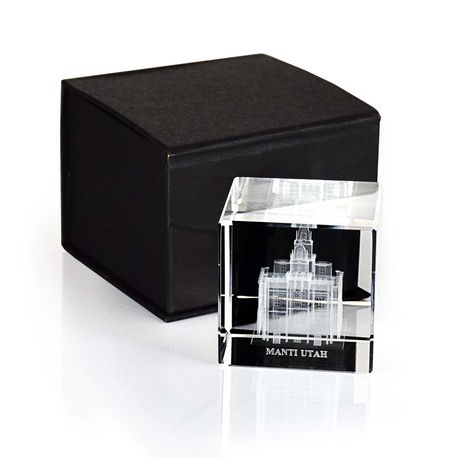 Manti Utah Temple Laser Engraved Crystal Cube