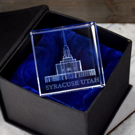 Syracuse Utah Temple Laser Engraved Crystal Cube
