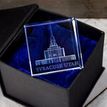 This beautiful laser engraved crystal cube makes for a perfect wedding or anniversary gifts. Together with a lighted rotating base, these 3D pieces of art make for a great decoration on a table or shelf. Each cube is packaged in a beautiful velvet-lined gift box. Over 30 temples are available for members across the United States and Canada. This cube is: 6cm x 6cm x 6cm.
