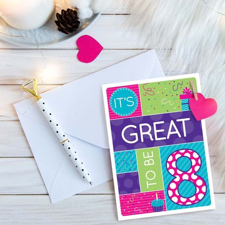 Ringmasters Great to be 8 Pink and Purple Greeting Card