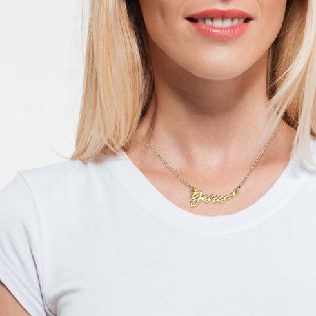 Jesus Script Gold Colored Necklace