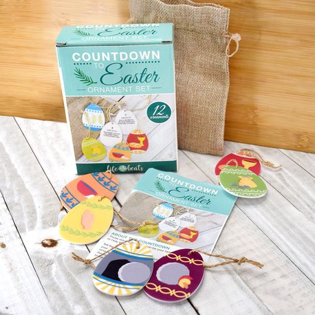 This 12 piece ornament set is the perfect way to help you and your loved ones focus more on our Savior during the Easter season. Each ornament is labeled with a topic, date and scripture reference. Starting 12 days before Easter, take an ornament read the corresponding story in the booklet. Then hang the ornament. This continues through Easter. Each set includes 12 plastic ornaments with twine cord, burlap bag and booklet. Ornaments are approximately 2".