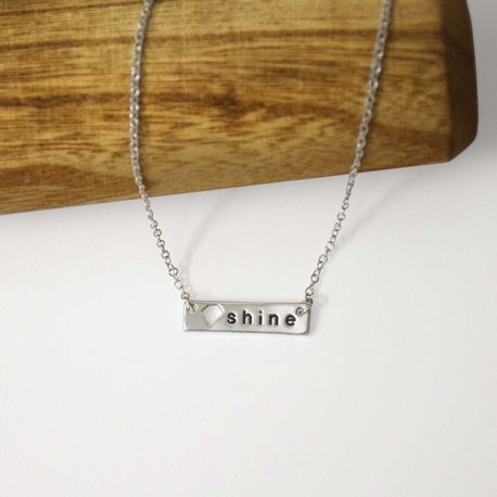 Shine Bar Necklace "Let your light so shine" Matthew 5:16 This dainty SHINE bar necklace comes with a cutout diamond shape and is completed on a 16 - 18" adjustable chain.
