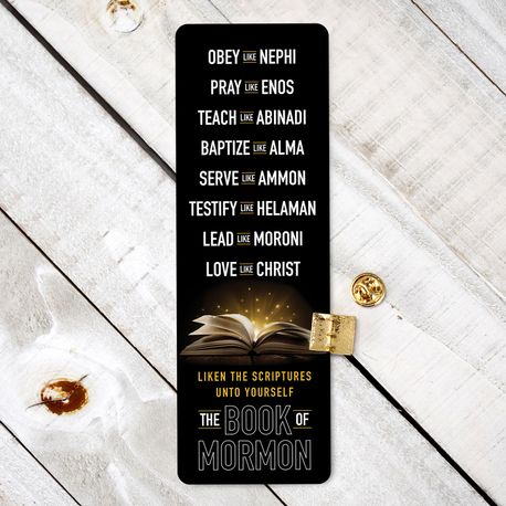 Pin sizes are between 1/2-3/4". Includes bookmark a 2x6" quality bookmark. Obey like Nephi Pray like Enos Teach like Abinadi Baptize like Alma Serve like Ammon Testify like Helaman Lead like Moroni Love like Christ