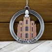This keepsake ornament proudly displays the beautiful Logan Utah temple in an antique silver finish with hand painted enamel. The ornament is 3" inches in diameter and features a silver string attachment to hang on your Christmas tree or a chrome plated ornament stand also available from Ringmasters. Perfect for weddings or anniversaries, bring this beautiful temple ornament into your home.
