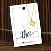 "I Need Thee Every Hour" Roman numeral dainty clock necklace, gold finish, and measures approximately 1/2". This necklace features two interlocking silver circles on a 16 - 18" curb link chain necklace.