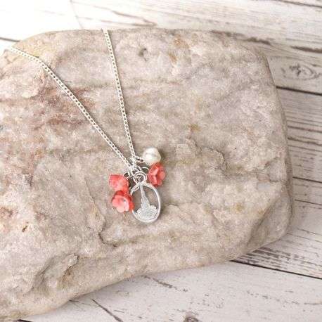 "The temple is a holy place, a place of love and beauty." Show your love for the temple with this pendant of the temple and flower blossom. The charms sit on an 18-20" adjustable curb link chain.