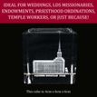 This beautiful laser engraved crystal cube makes for a perfect wedding or anniversary gifts. Together with a lighted rotating base, these 3D pieces of art make for a great decoration on a table or shelf. Each cube is packaged in a beautiful velvet-lined gift box. Over 30 temples are available for members across the United States and Canada. This cube is: 6cm x 6cm x 6cm.