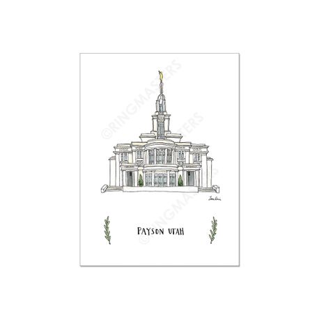 Gift this beautiful Payson Temple 3x4" Each print is printed on a quality cardstock and makes a great gift for all from loved ones to your primary class! From Ringmasters. The world leader in gifts for members of the Church of Jesus Christ of Latter-day Saints