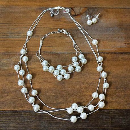 Testimony Pearls Necklace and Bracelet Imitation Pearl Jewelry Set and Gift Box