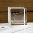 This beautiful laser engraved crystal cube makes for a perfect wedding or anniversary gifts. Together with a lighted rotating base, these 3D pieces of art make for a great decoration on a table or shelf. Each cube is packaged in a beautiful velvet-lined gift box. A great holiday keepsake. This cube is: 5cm x 5cm x 8cm.