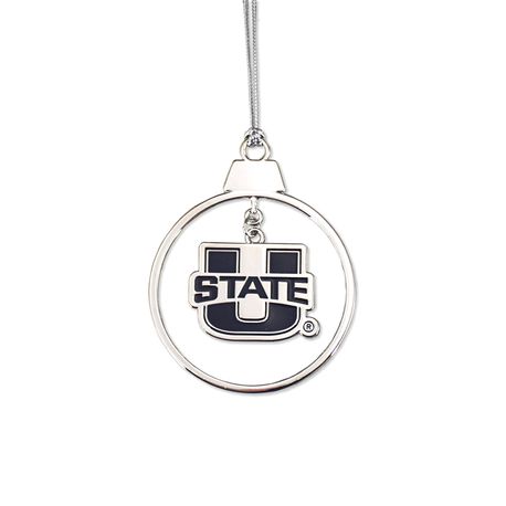 Fan Frenzy Gifts Utah State Aggies Oval 2 Piece Silver Colored Ornament